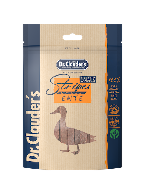 Treat your dogs and cats to Dr Clauder's Stripes Duck Snacks - delicious strips made from 95% high-quality duck meat. These snacks are ideal for daily rewards and training. Duck meat is rich in magnesium, potassium, phosphorus, vitamins and folic acid. Gentle steam drying preserves the unique flavour of the meat. Enriched with inulin (FOS) and valuable minerals, these snacks promote digestion and the general well-being of your four-legged friend.
