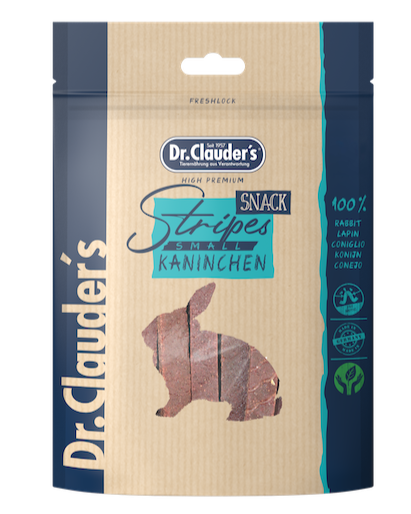 Dr Clauder‘s rabbit filet strips consist of 100% delicious rabbit meat. The meat keeps its unique flavour by using a gentle steam drying process. 100% natural. Contains FOS.