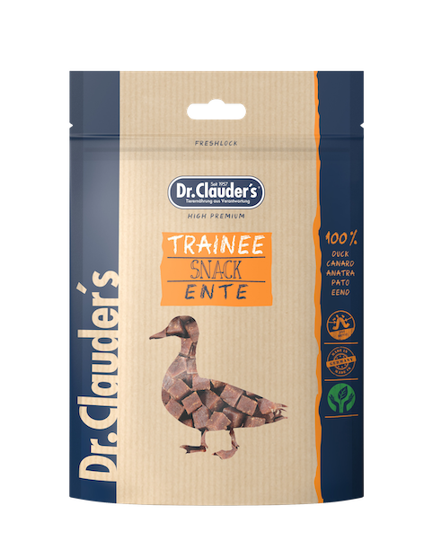 Dr Clauder‘s Trainee Snack Duck consist of 100% delicious duck breast filet. The meat keeps its unique flavour by using a gentle steam drying process. 100% natural. Contains FOS.