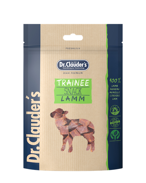 Dr Clauder‘s Trainee Snack Lamb consist of 95% delicious Lamb meat. The meat keeps its unique flavour by using a gentle steam drying process. 100% natural. Contains FOS.