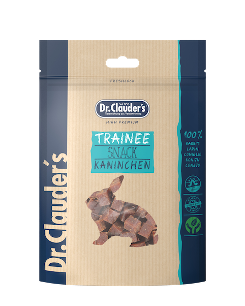Dr Clauder‘s Trainee Snack Rabbit consist of 95% delicious rabbit meat. The meat keeps its unique flavour by using a gentle steam drying process. 100% natural. Contains FOS.